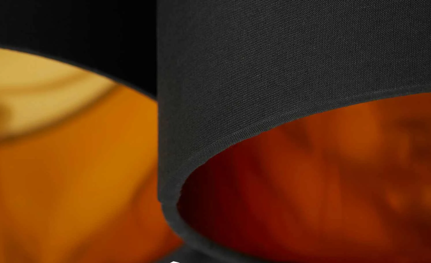Deckenleuchte, 3-flammig, Stoffschirm schwarz/gold