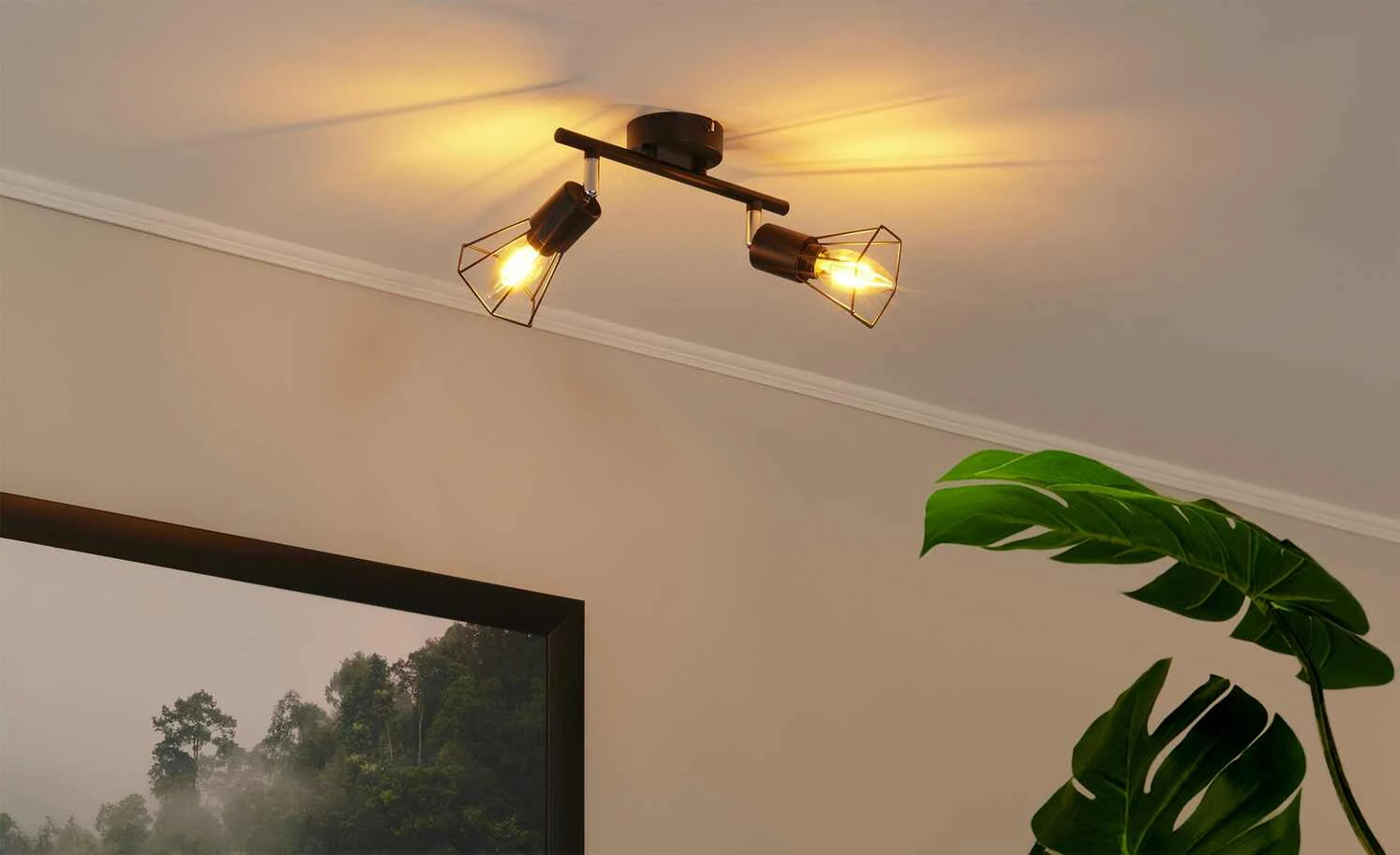 Deckenstrahler, 2-flammig, Draht schwarz