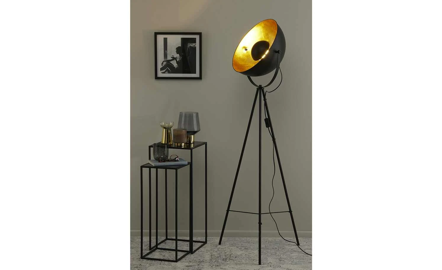 Dreibein-Stehleuchte, 1-flammig,schwarz/goldfarben
