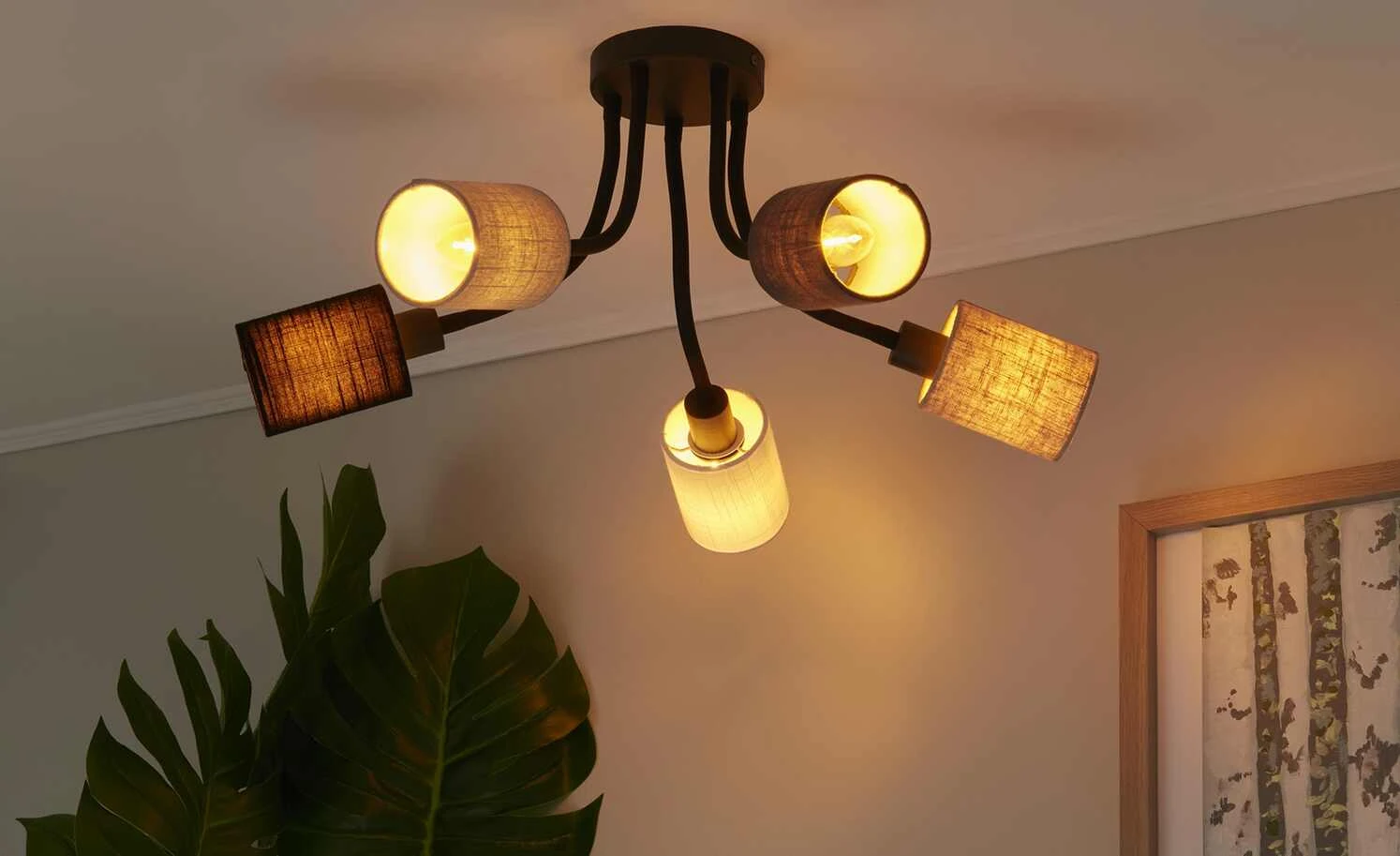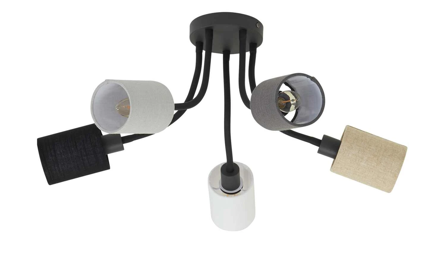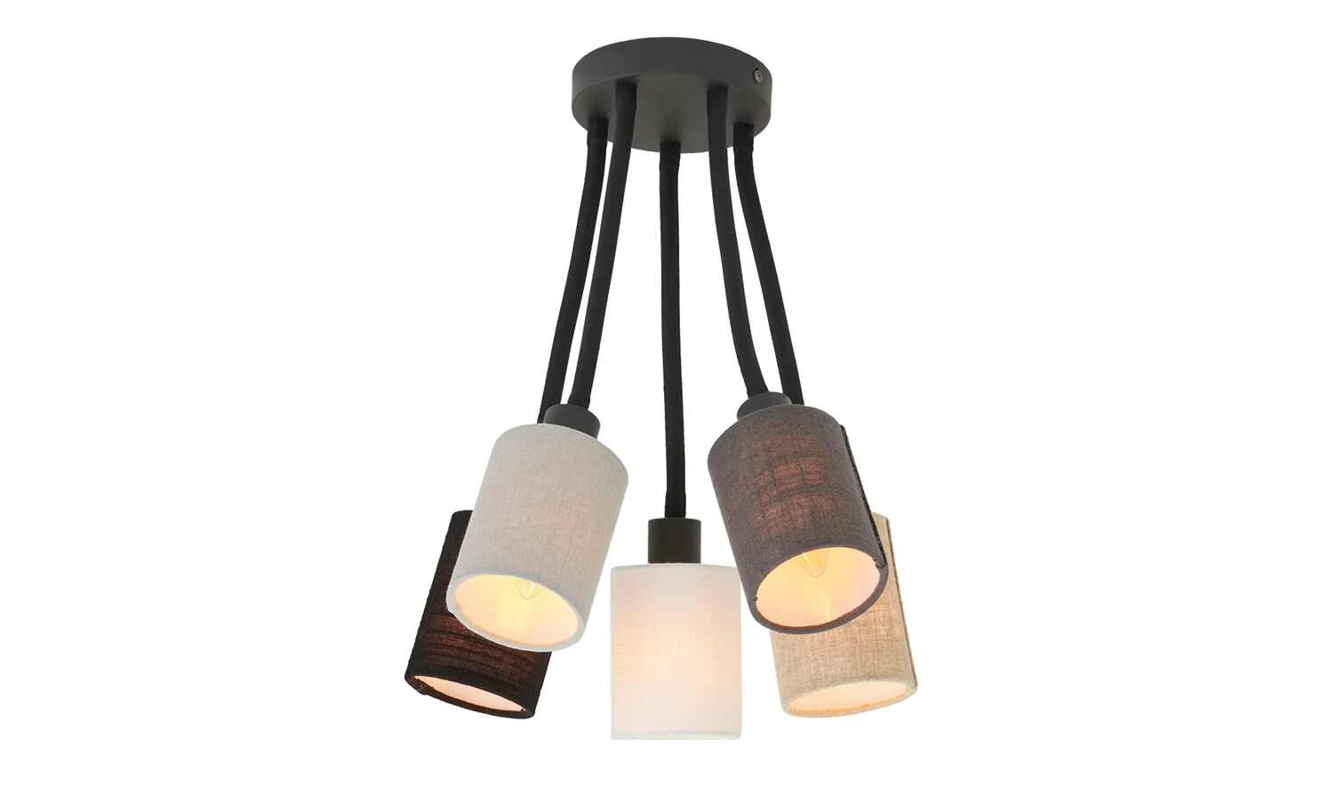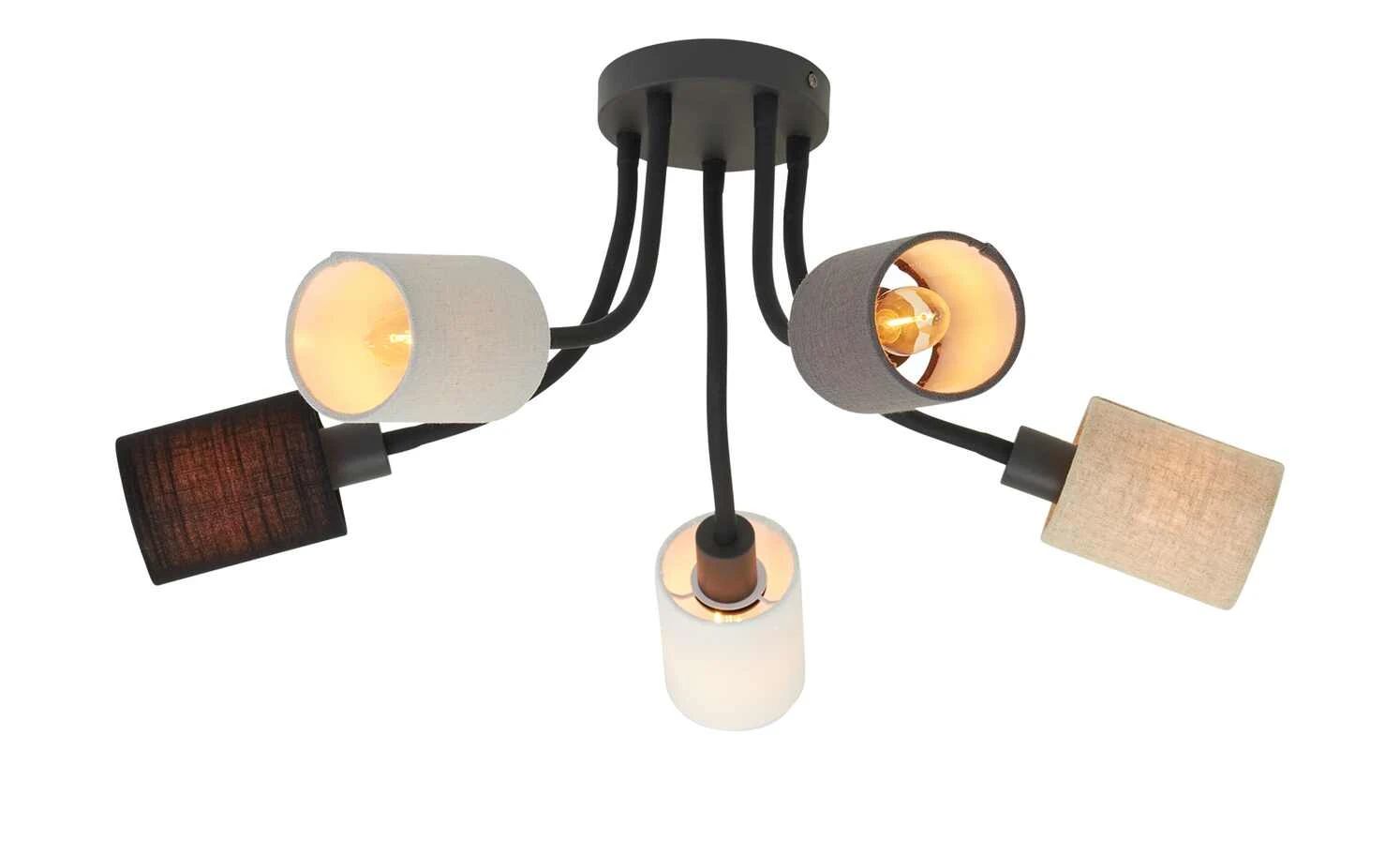 Fischer-Honsel Deckenleuchte, 5-flammig, schwarz mit Leinenschirmen
