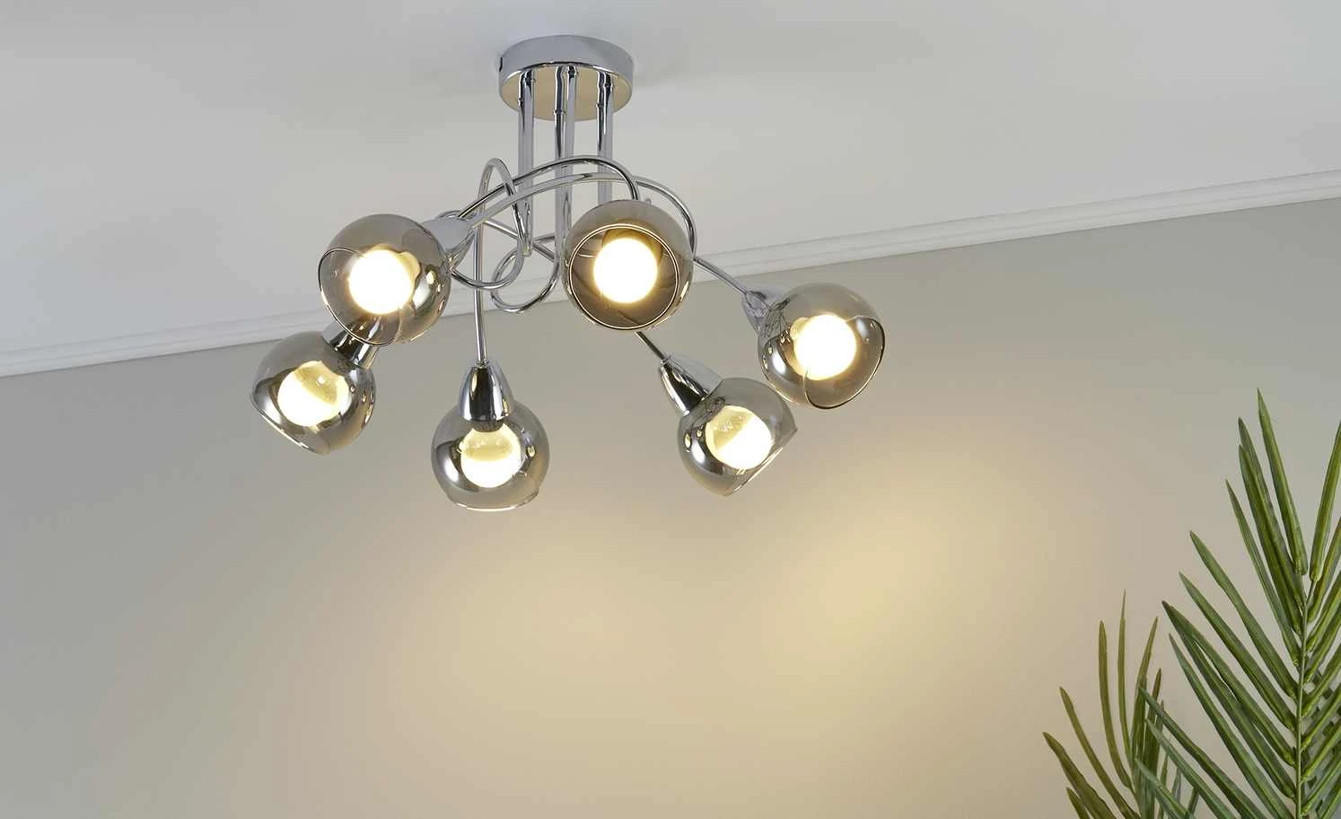 HOME STORY Deckenleuchte, 6-flammig, Rauchglas