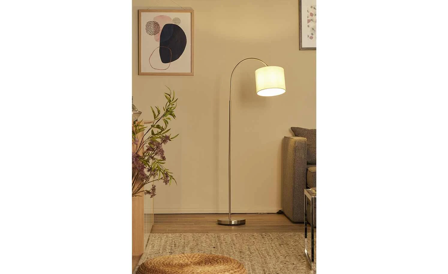 KHG Bogenleuchte, 1-flammig, Stoffschirm weiß