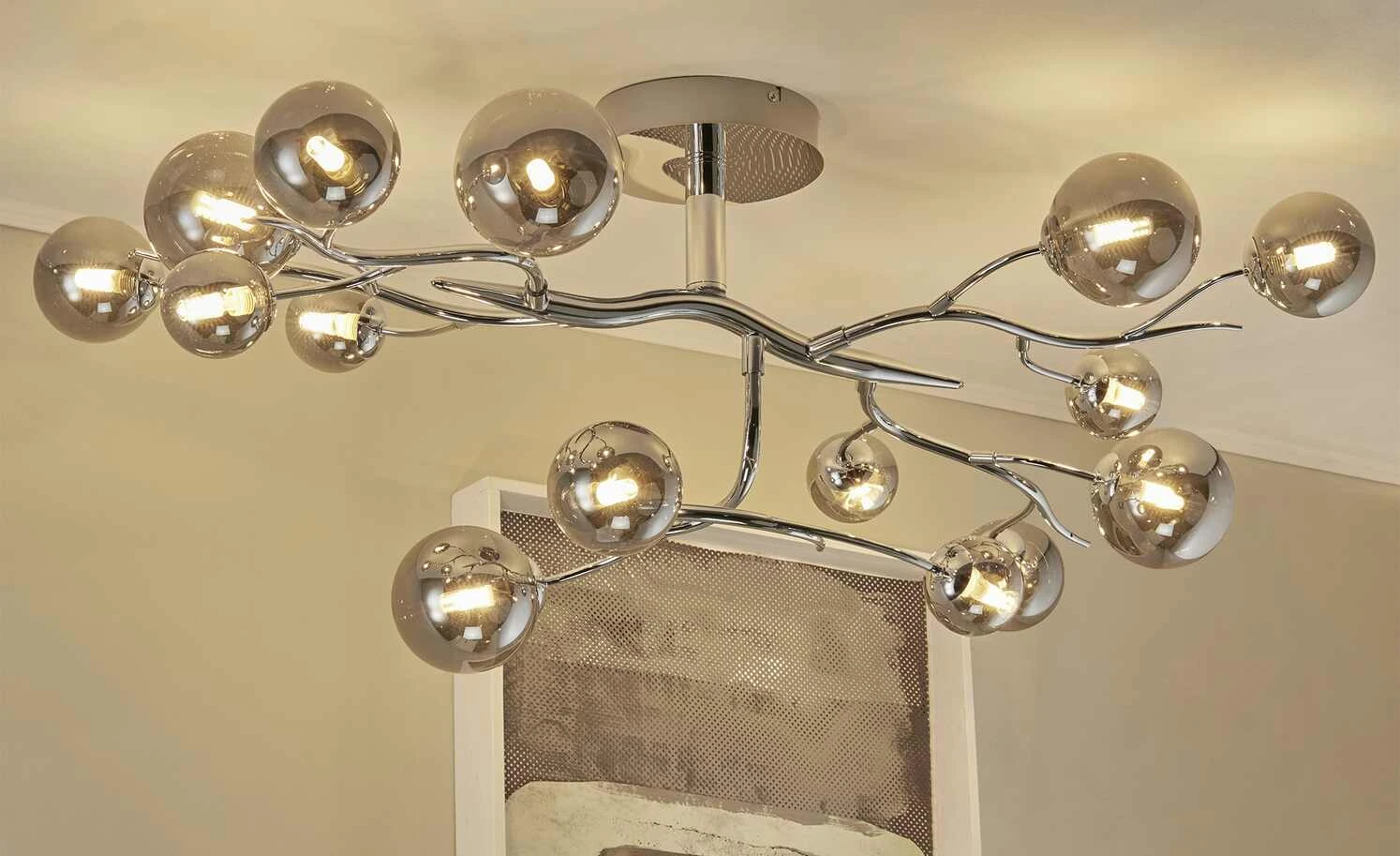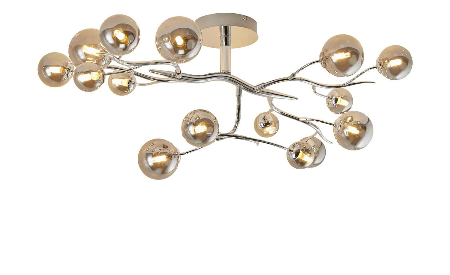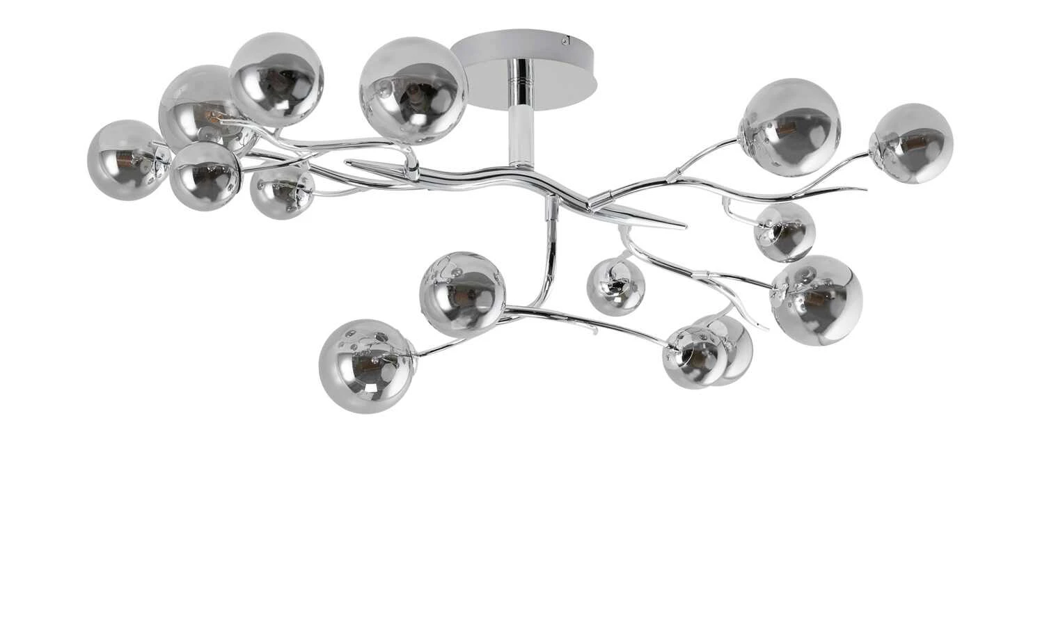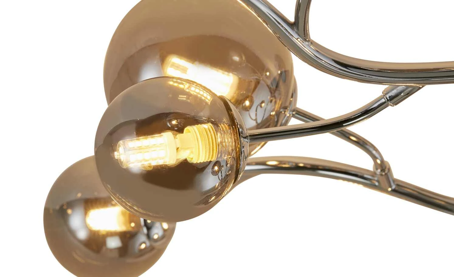 KHG Deckenleuchte, 15-flammig, chrom / Glaskugeln in Rauchglas