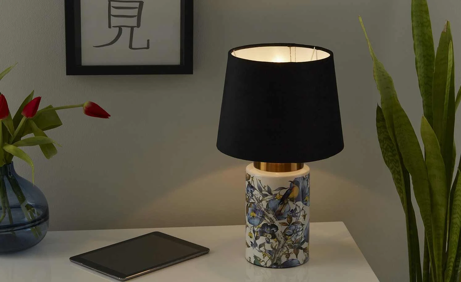 KHG Keramik-Tischleuchte, 1-flammig, schwarz ´Vögel´