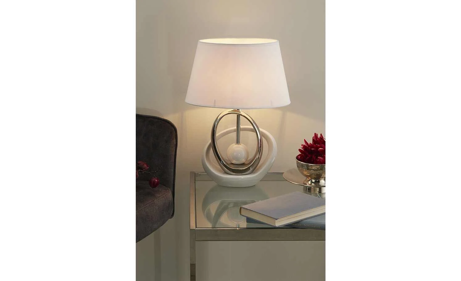 KHG Keramik-Tischleuchte, 1-flammig, weiß/chromfarben