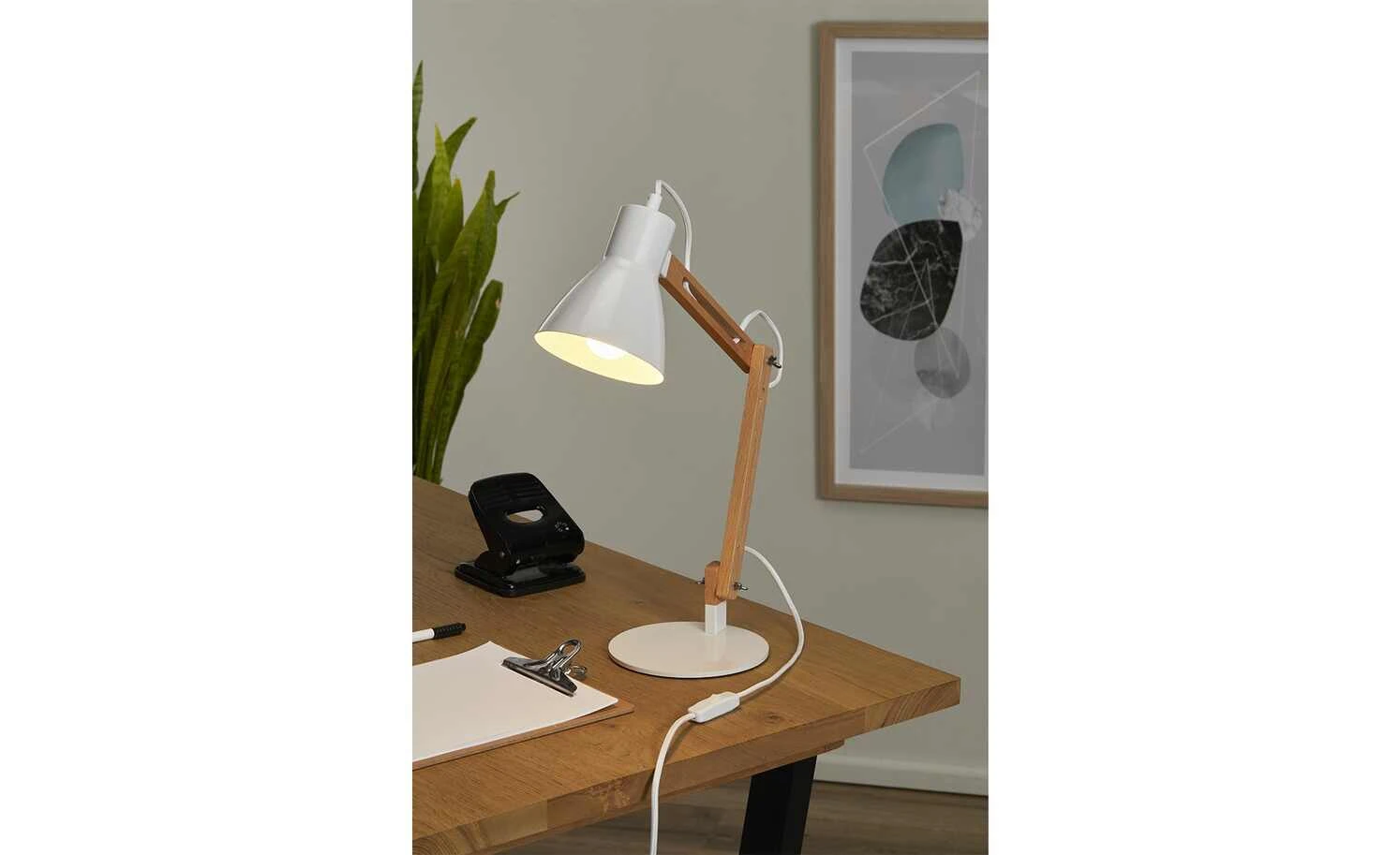 KHG Tischleuchte, 1-flammig, Buche/Weiß