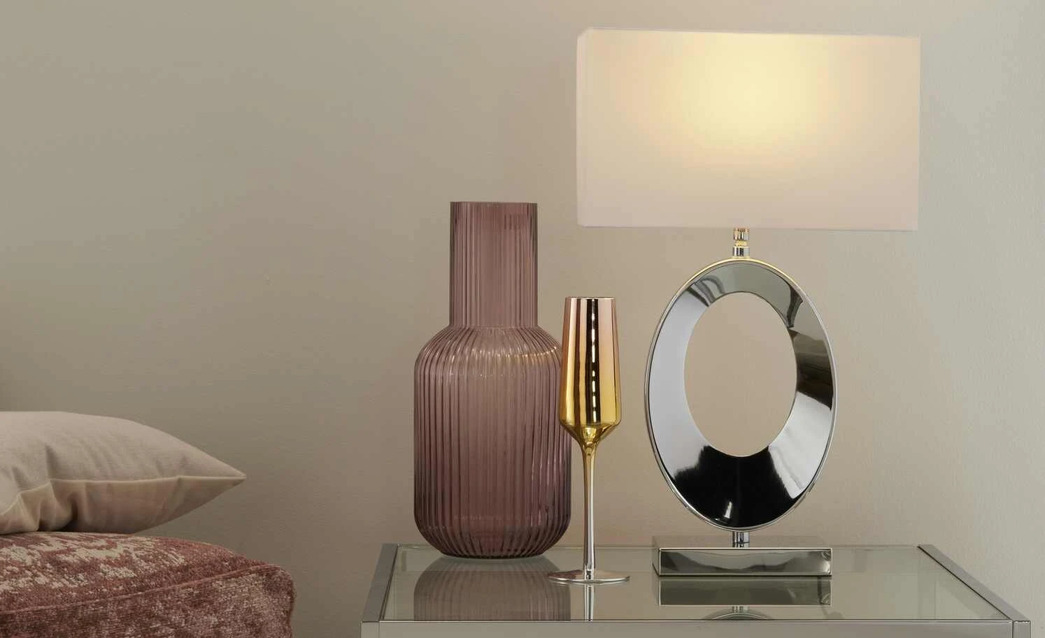 KHG Tischleuchte, 1-flammig, chrom, Stoffschirm eckig