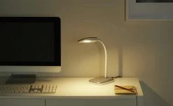 Die Tischleuchte von KHG zeichnet sich durch eine stilvolle Optik aus: Vom runden Fuß über den Ständer bis hin zum geschwungenen Lampenschirm passen die Elemente ideal zusammen. Der Fuß hat eine satinierte Optik, die sich auch im Ständer finden lässt. Der transparente Lampenschirm ist wie eine Schale gestaltet, die sich nach unten öffnet. Dadurch wird das Licht angenehm verteilt. Eingeschaltet wird die Lampe über einen kleinen, handlichen Kippschalter, der in das Kabel der Leuchte integriert ist.