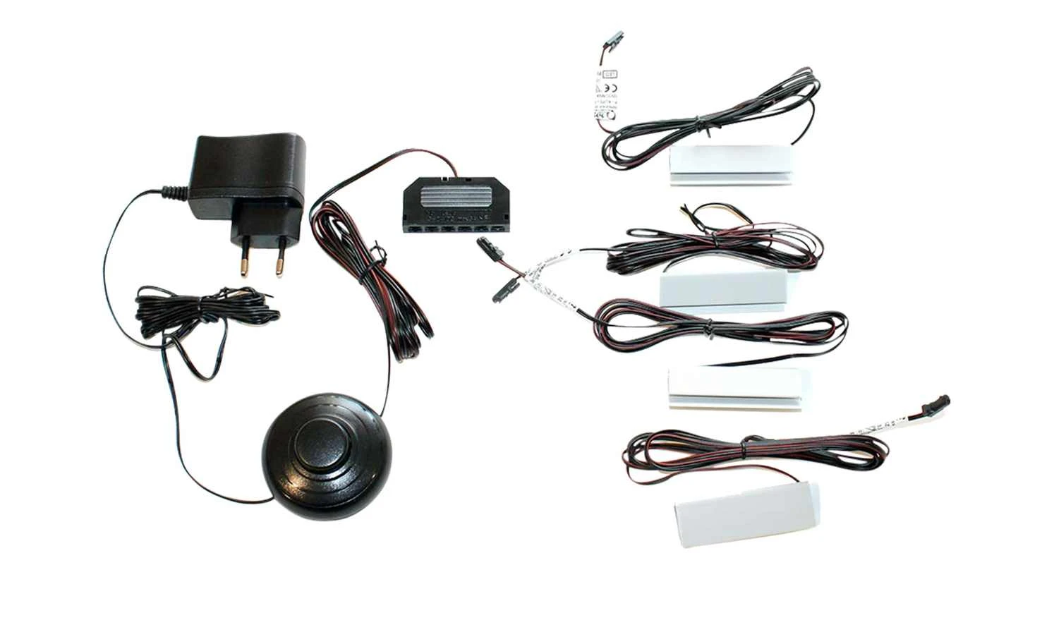- Mehr zu Ausstattung / Funktion: 4er-Set LED-Clips, Stecker, Trafo, Fußtretschalter, Verteiler