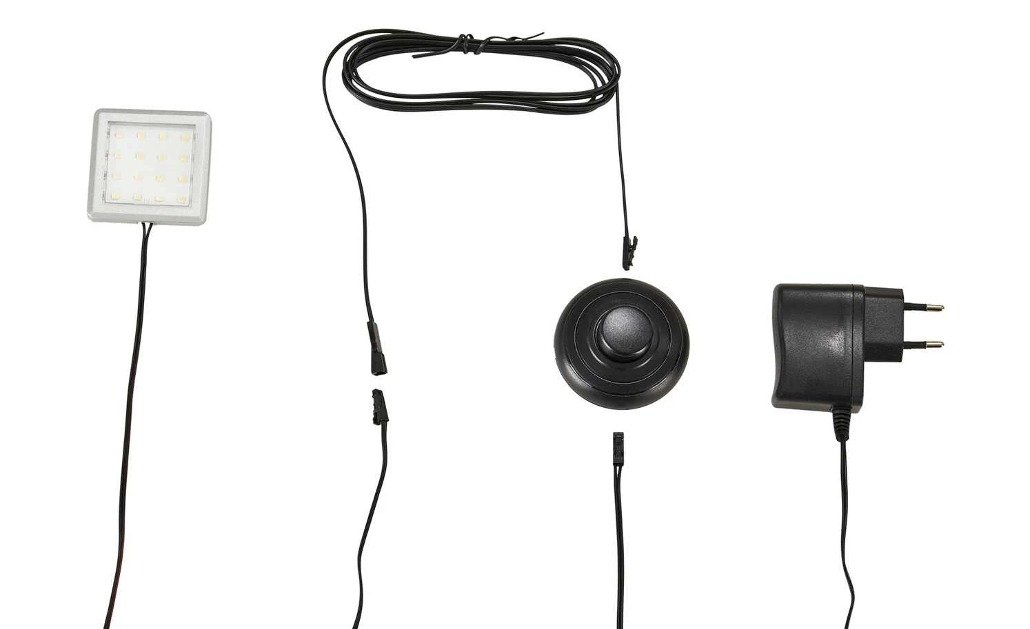 - Lieferumfang / mitgeliefertes Zubehör: 1er Set LED- Unterbauspot, Trittschalter, Zuleitung, Verteiler