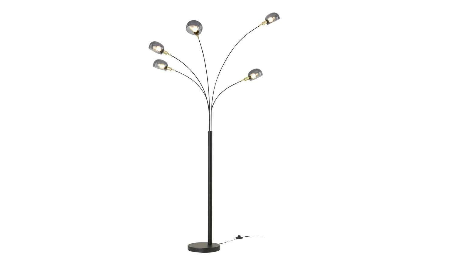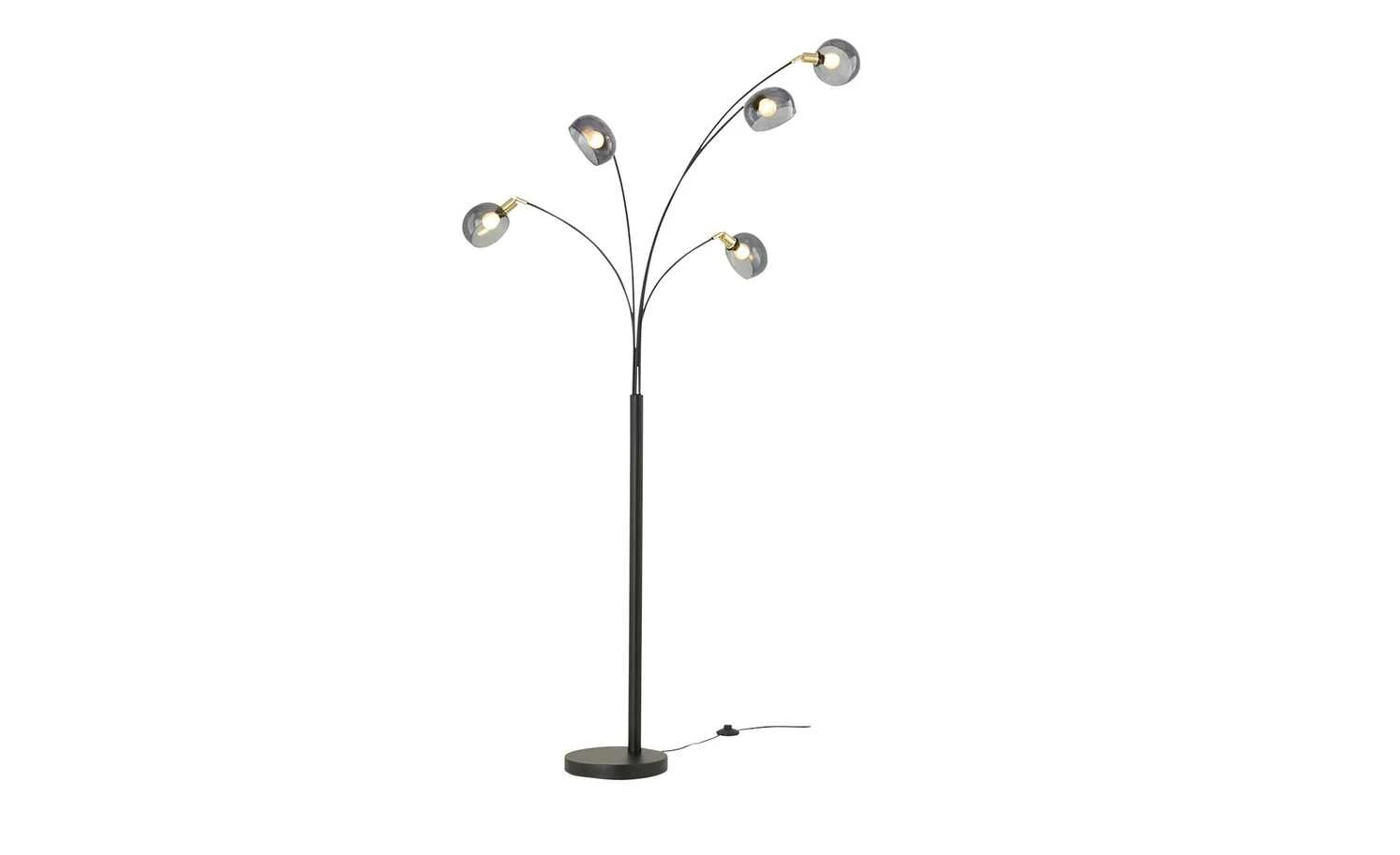Meisterleuchten Bogenleuchte, 5-flammig, schwarz / Rauchglas