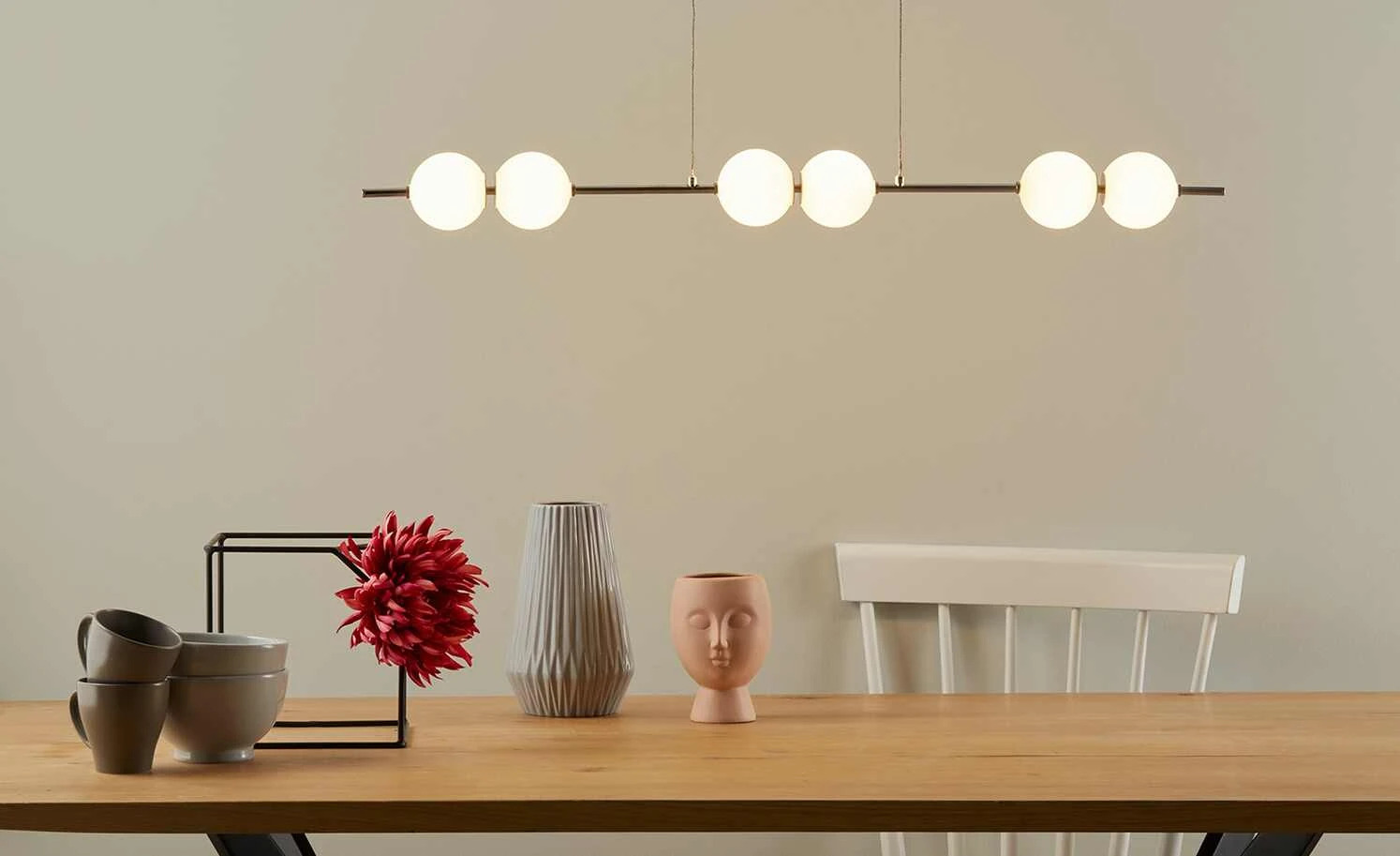Meisterleuchten LED-Pendelleuchte, 6-flammig, chrom, Glaskugeln