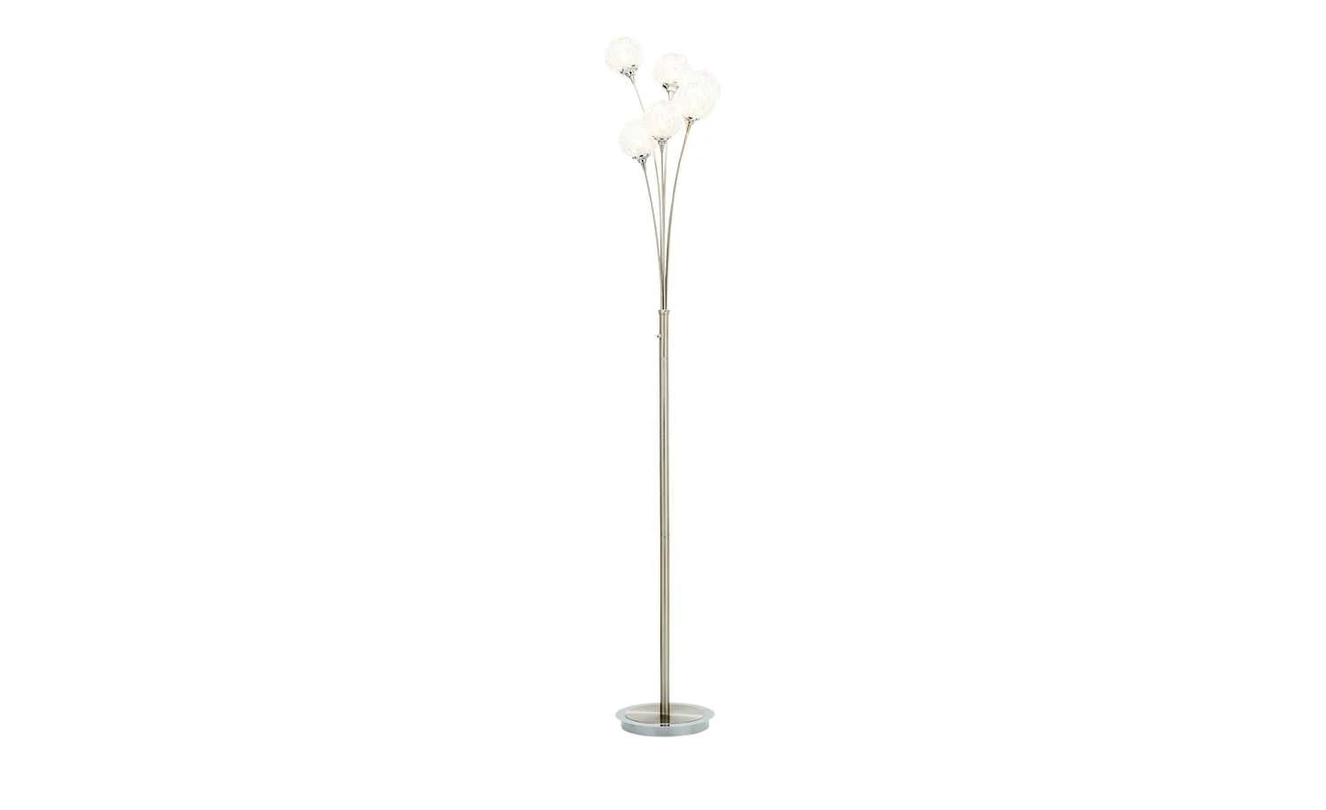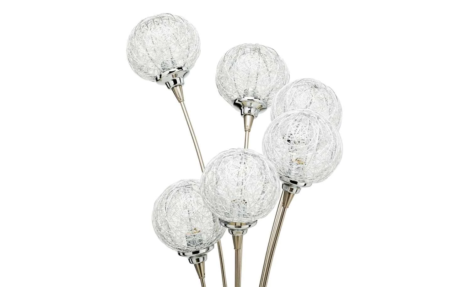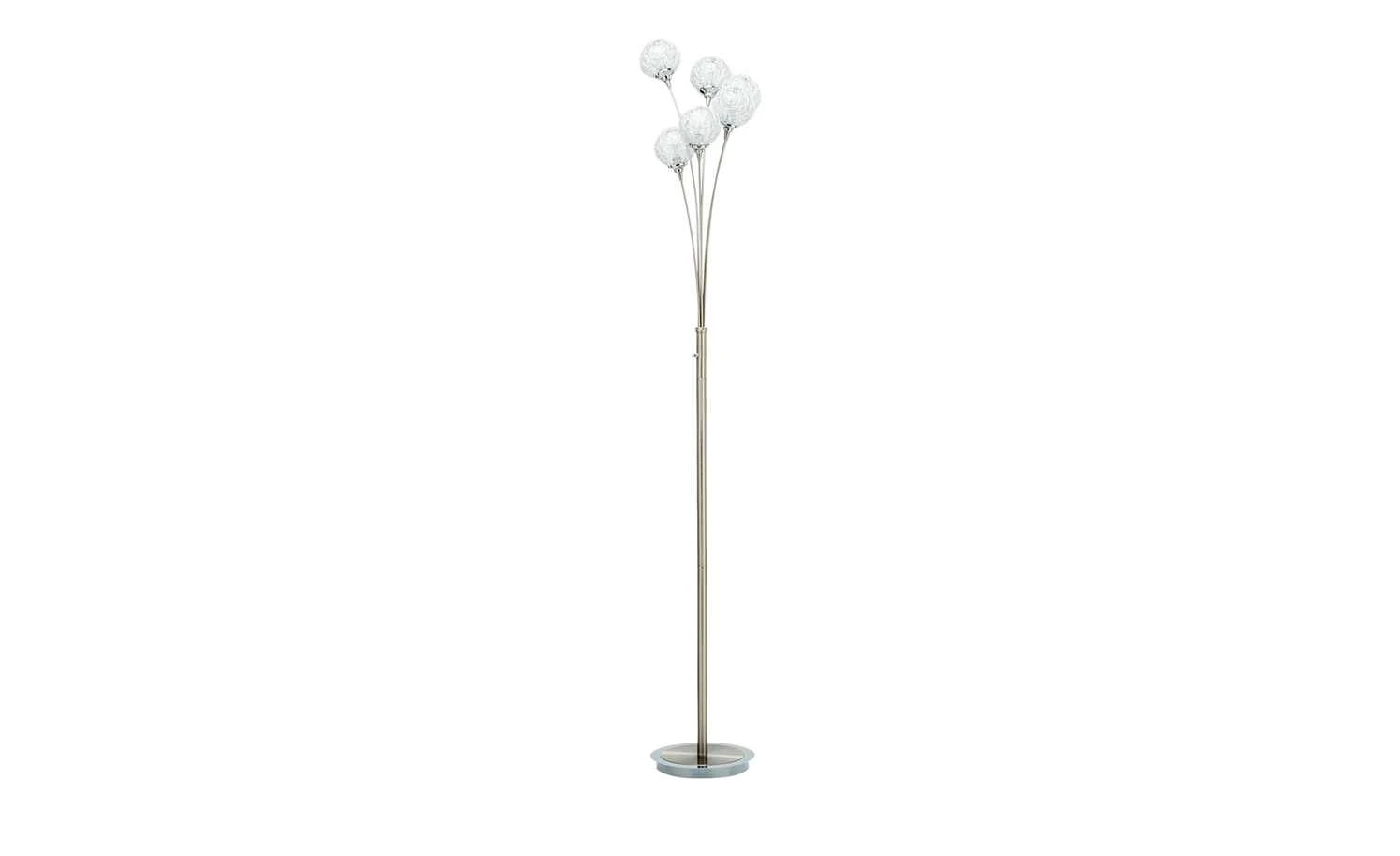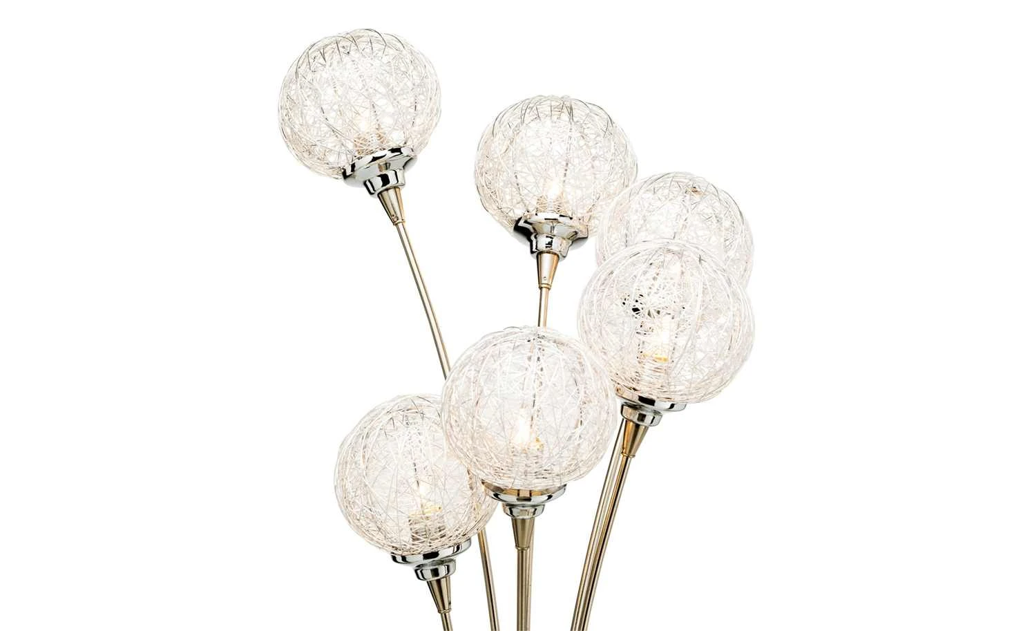Elegant und zeitlos präsentiert sich diese 6- flammige Stehleuchte. Die Kugeln aus Aluminium passen optisch perfekt zum Gestell aus Stahl und vervollständigen das dekorative Bild des hochwertigen Accessoires. Alle benötigten Leuchtmittel sind bereits im Lieferumfang enthalten.