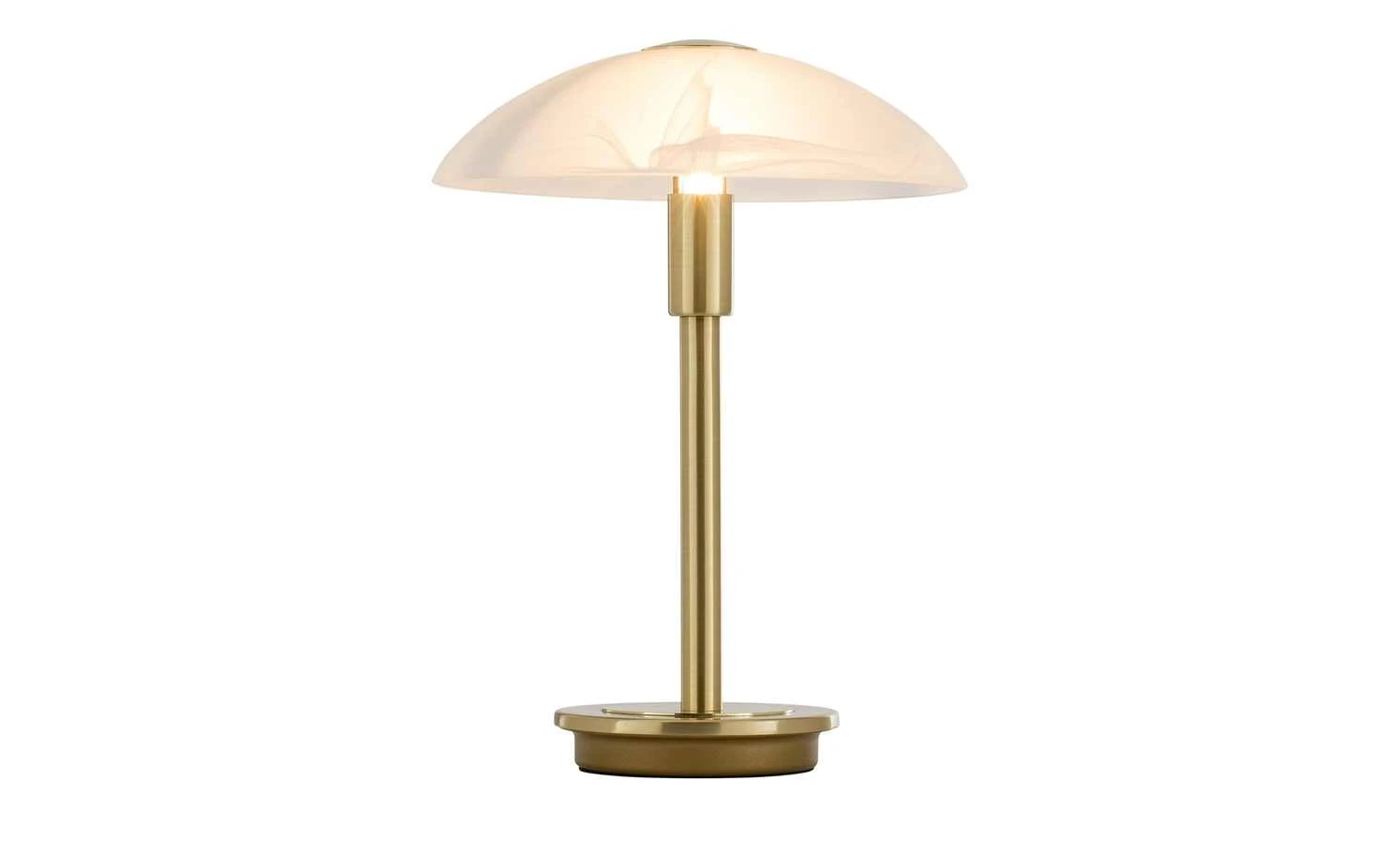 Paul Neuhaus Tischleuchte messing matt mit Glasschirm