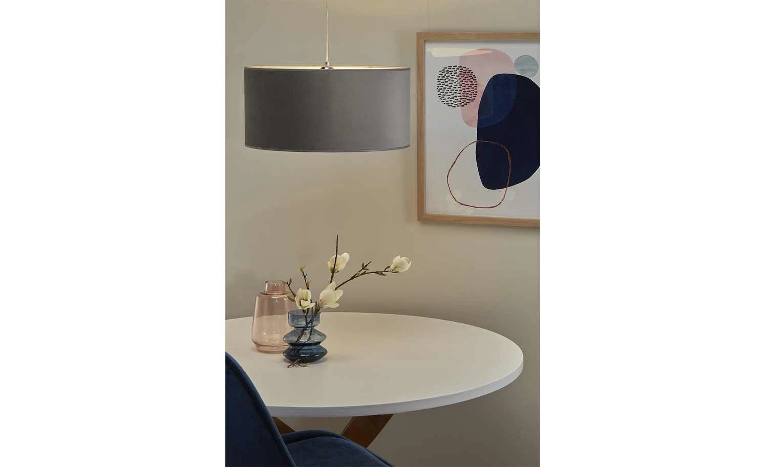 Pendelleuchte, 1-flammig, Samt grau