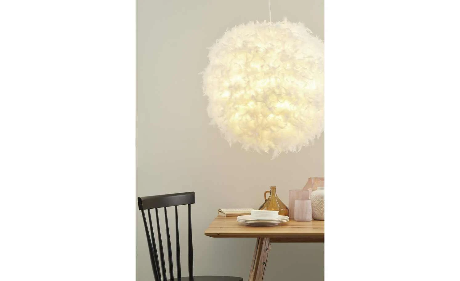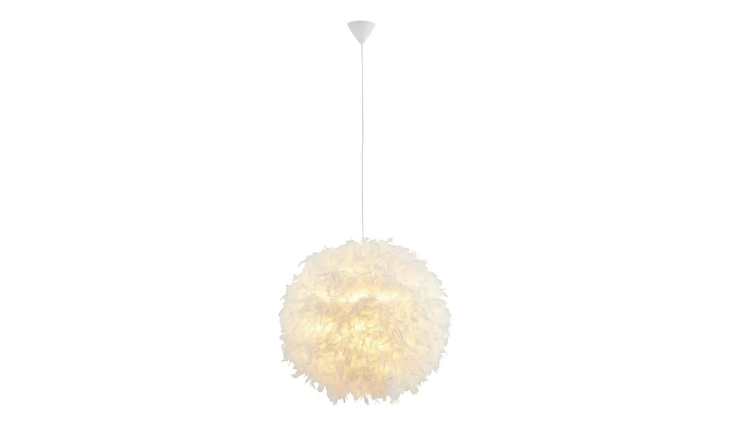 Pendelleuchte, 1-flammig, Schirm aus weißen Federn
