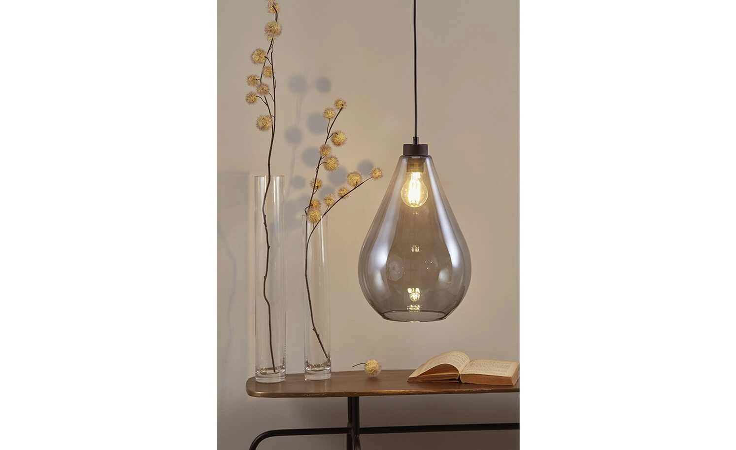 Pendelleuchte, 1-flammig, schwarz/Glas graphitfarben