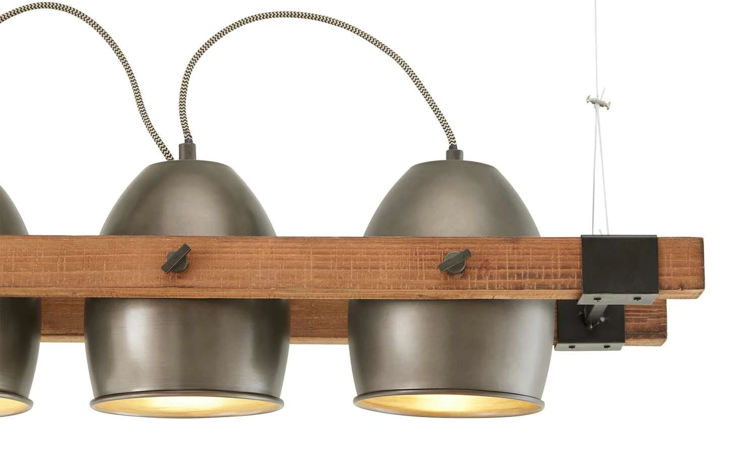 Pendelleuchte, 4-flammig, Metall/ Holz schwarz