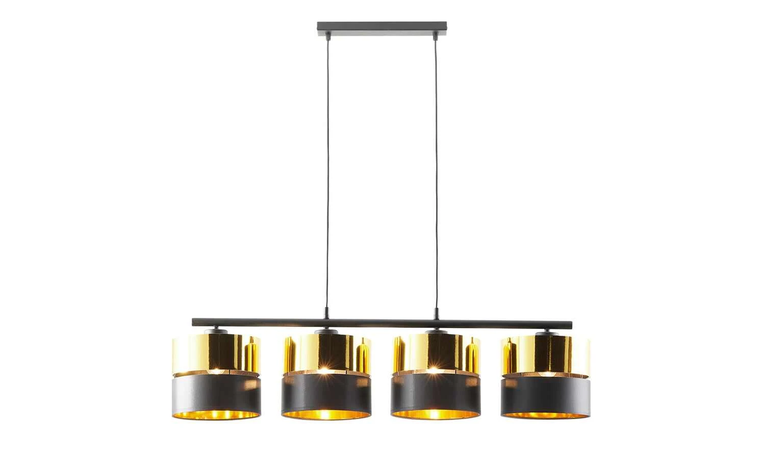 Pendelleuchte, 4-flammig, Schwarz/goldfarben