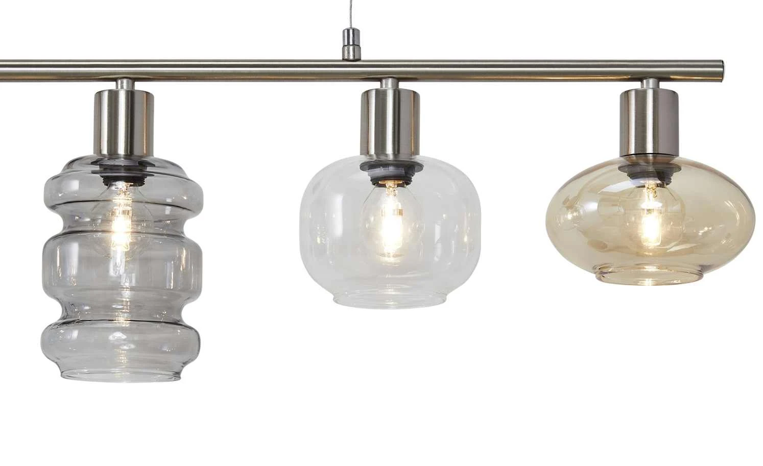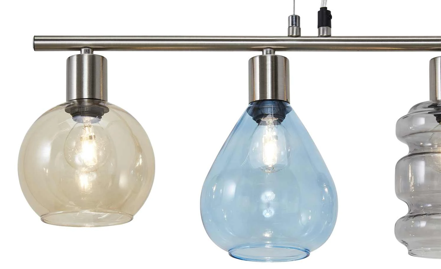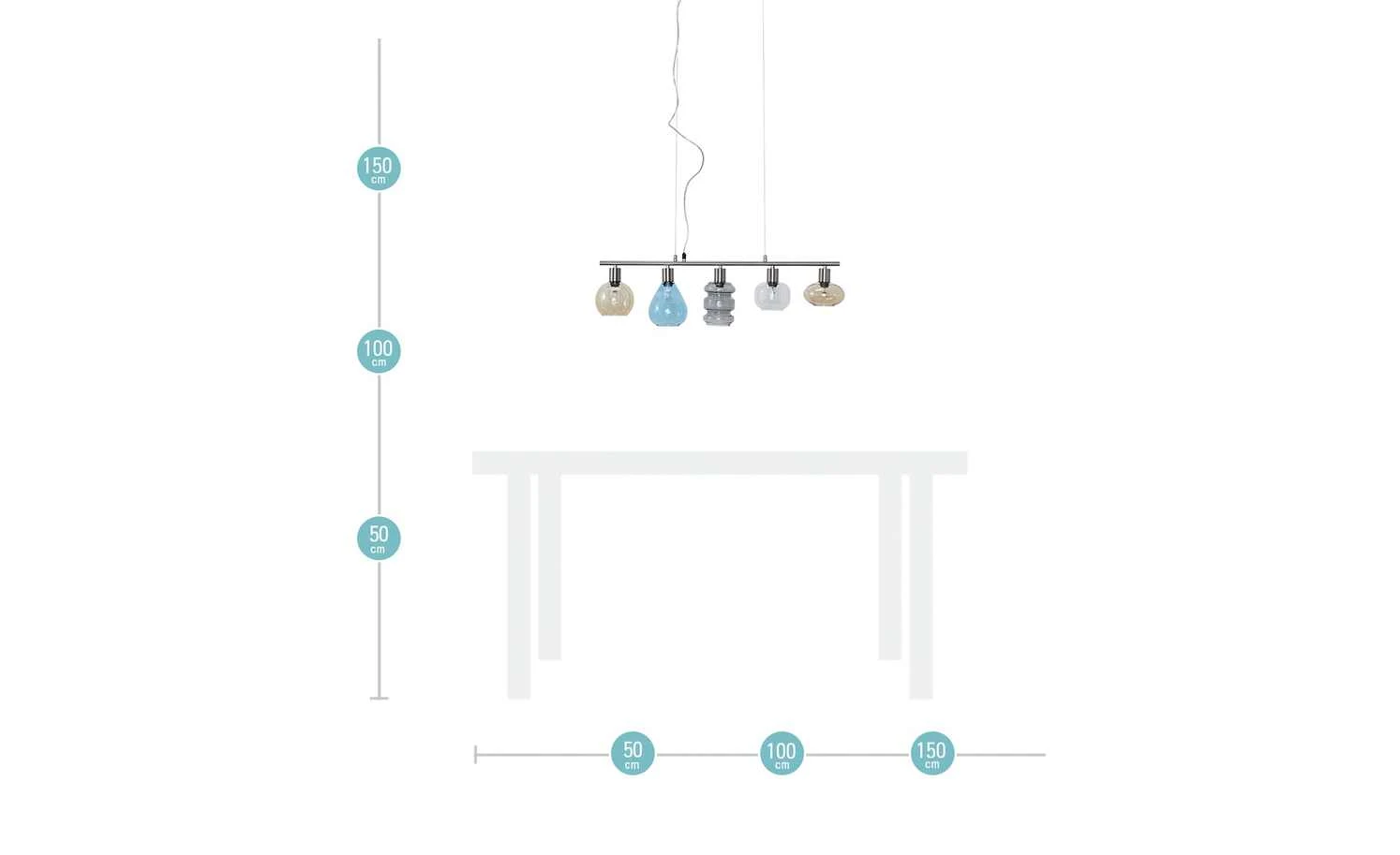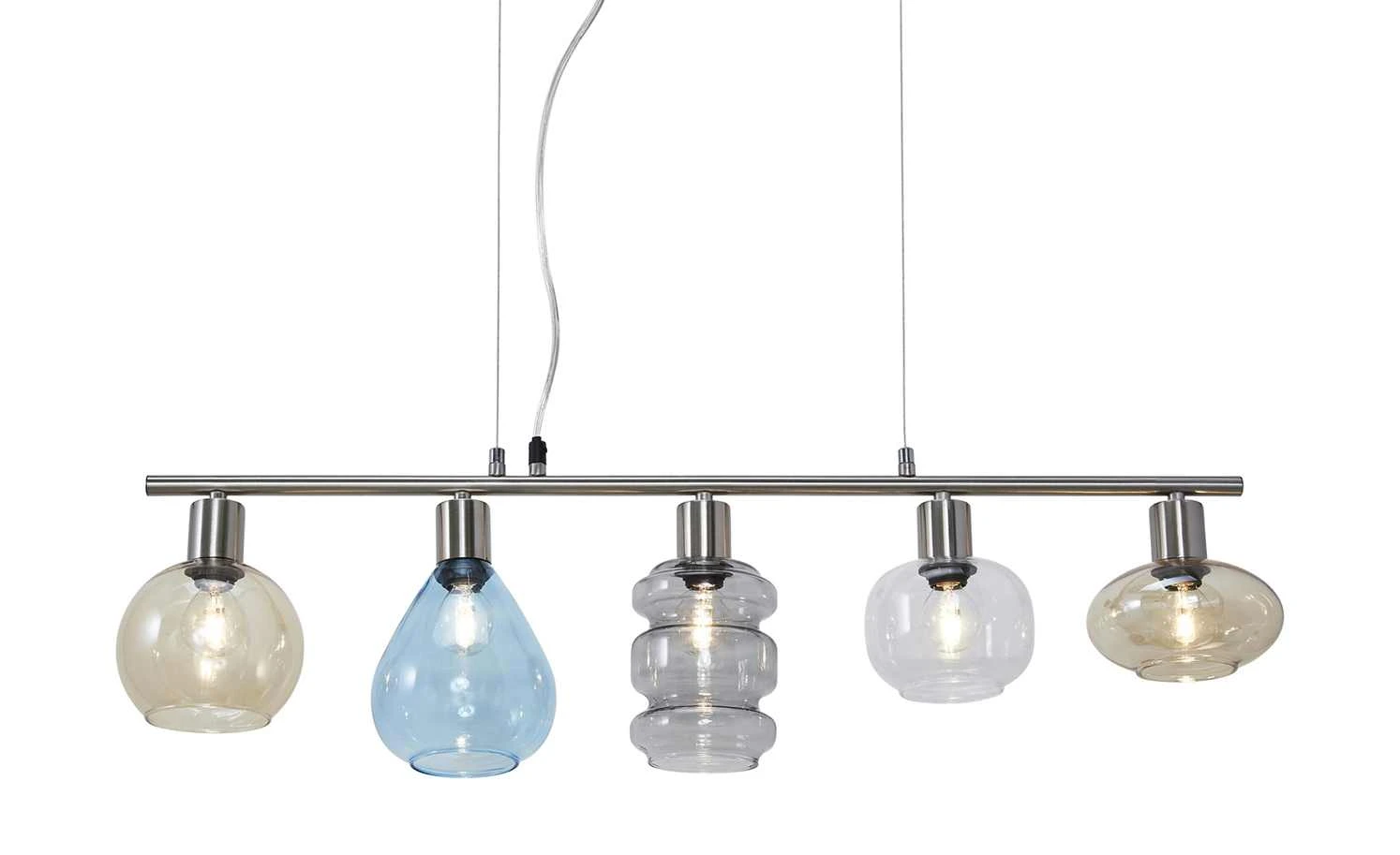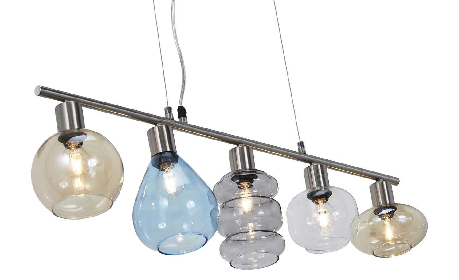 Pendelleuchte, 5-flammig mit verschiedenen Schirmen
