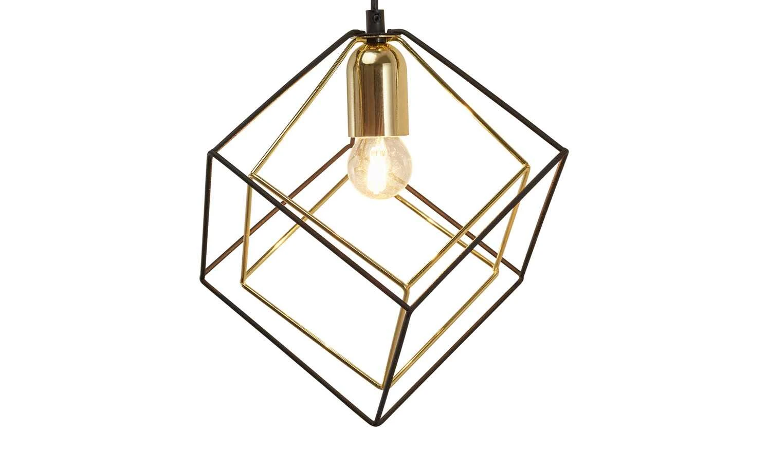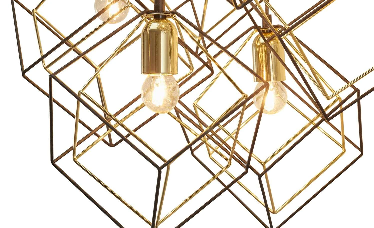 Pendelleuchte, 6-flammig, schwarz/messing Kubus