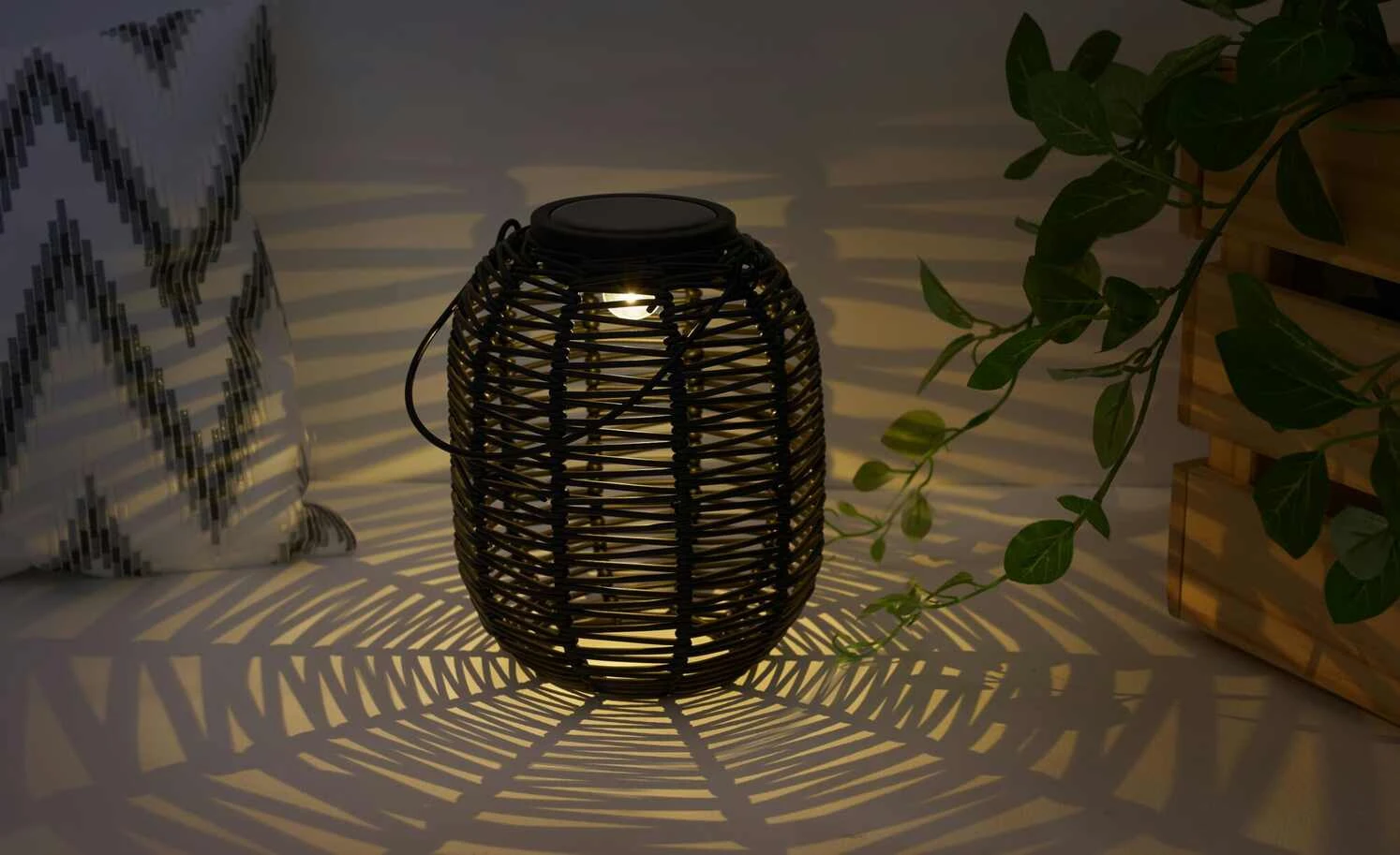 Solar-Tischleuchte, Laterne Rattan schwarz