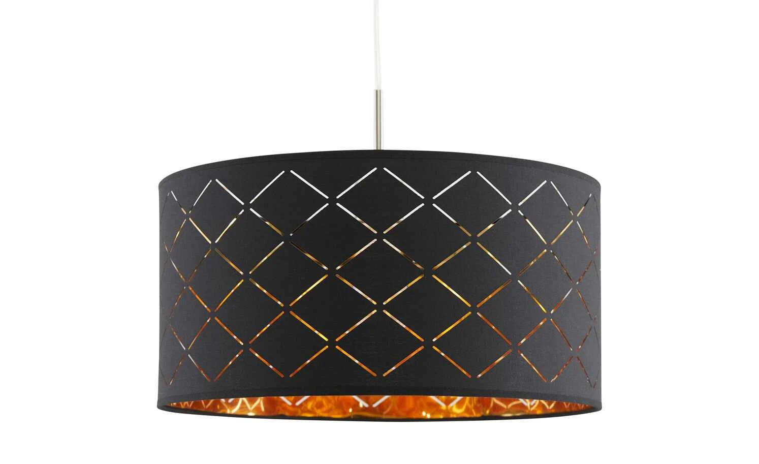Stoffpendelleuchte, 1-flammig, Schirm schwarz/goldfarben