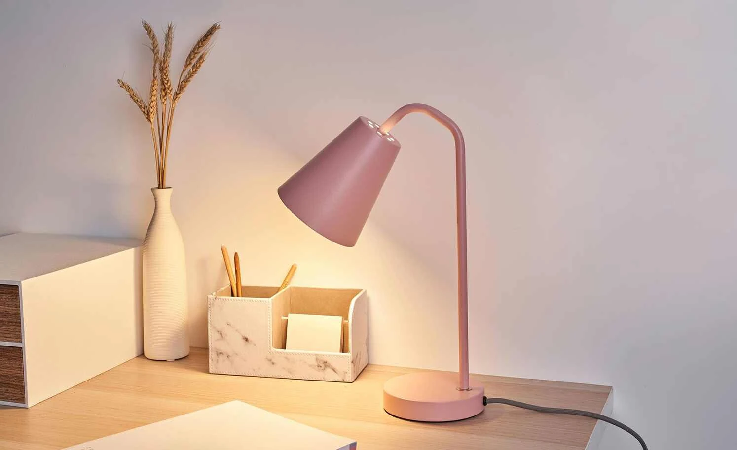 Tischleuchte, 1-flammig, Metall/ rosa