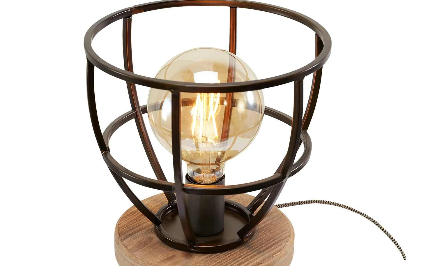 Tischleuchte, 1-flammig, Metallkorb schwarz