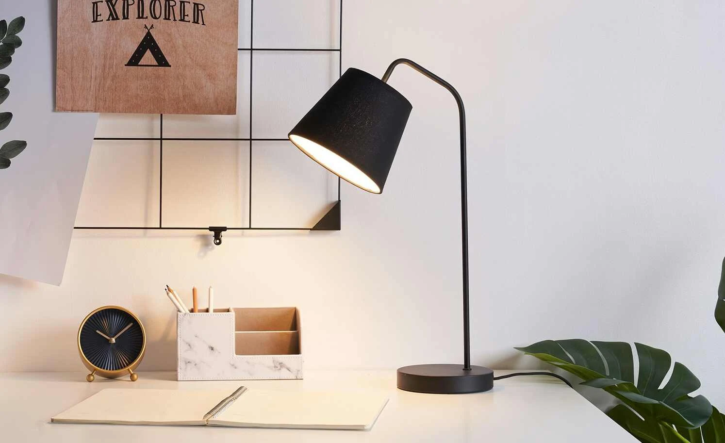 Tischleuchte, 1-flammig, Stoffschirm schwarz