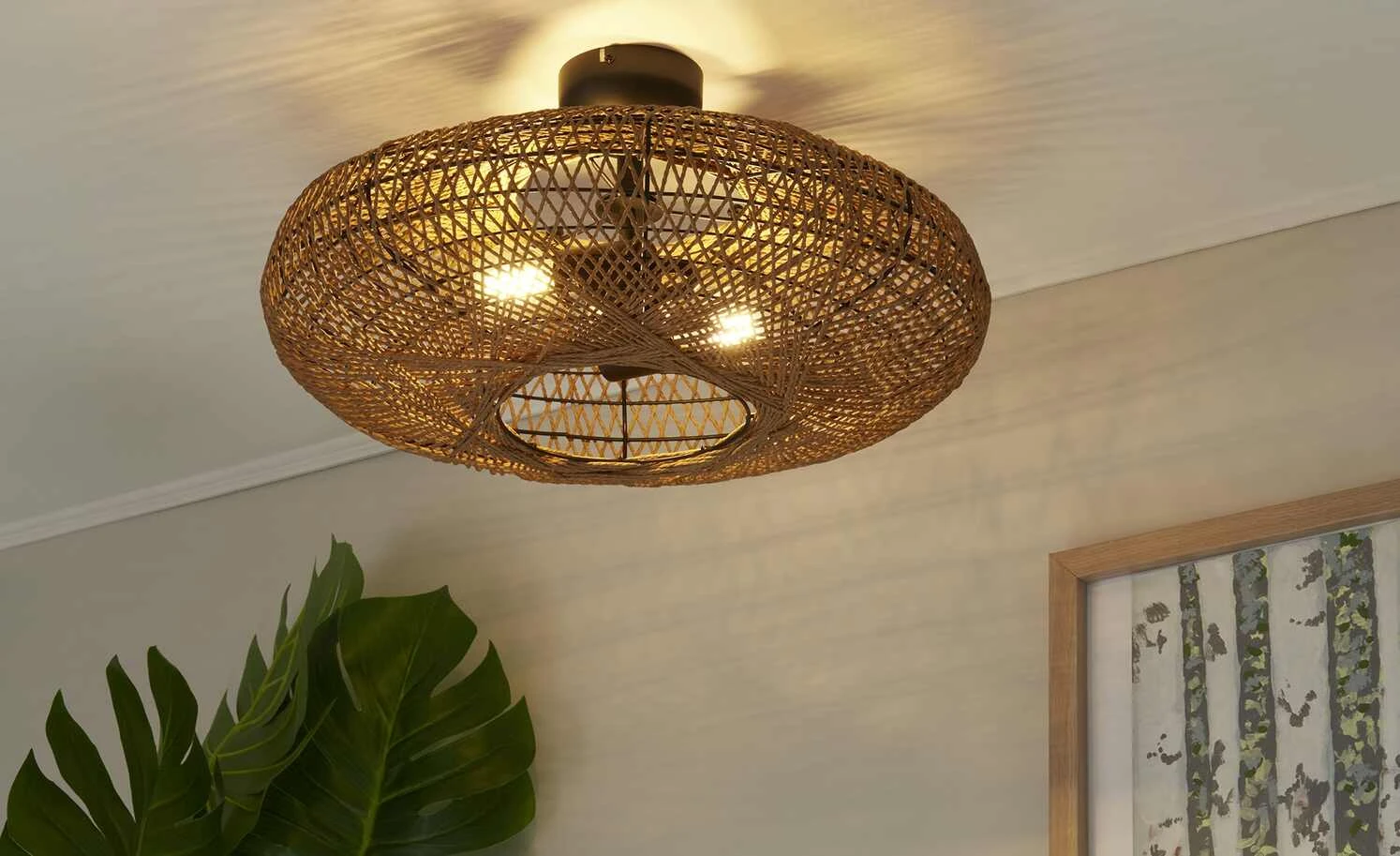 Trio Deckenleuchte, 2-flammig, Schirm aus Sisal