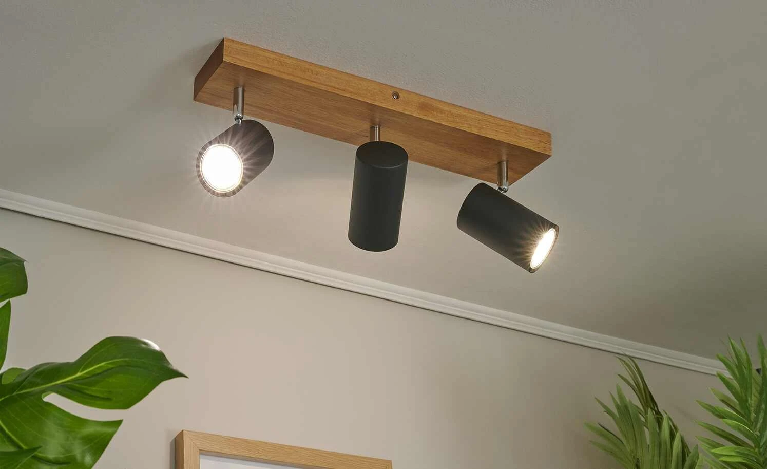 Trio Deckenspot, 3-flammig, schwarz / Eiche