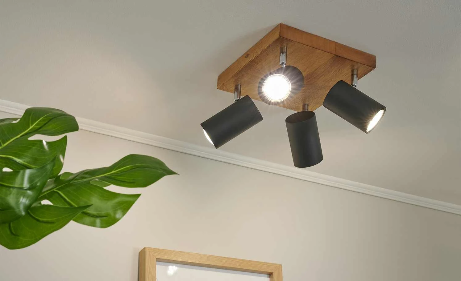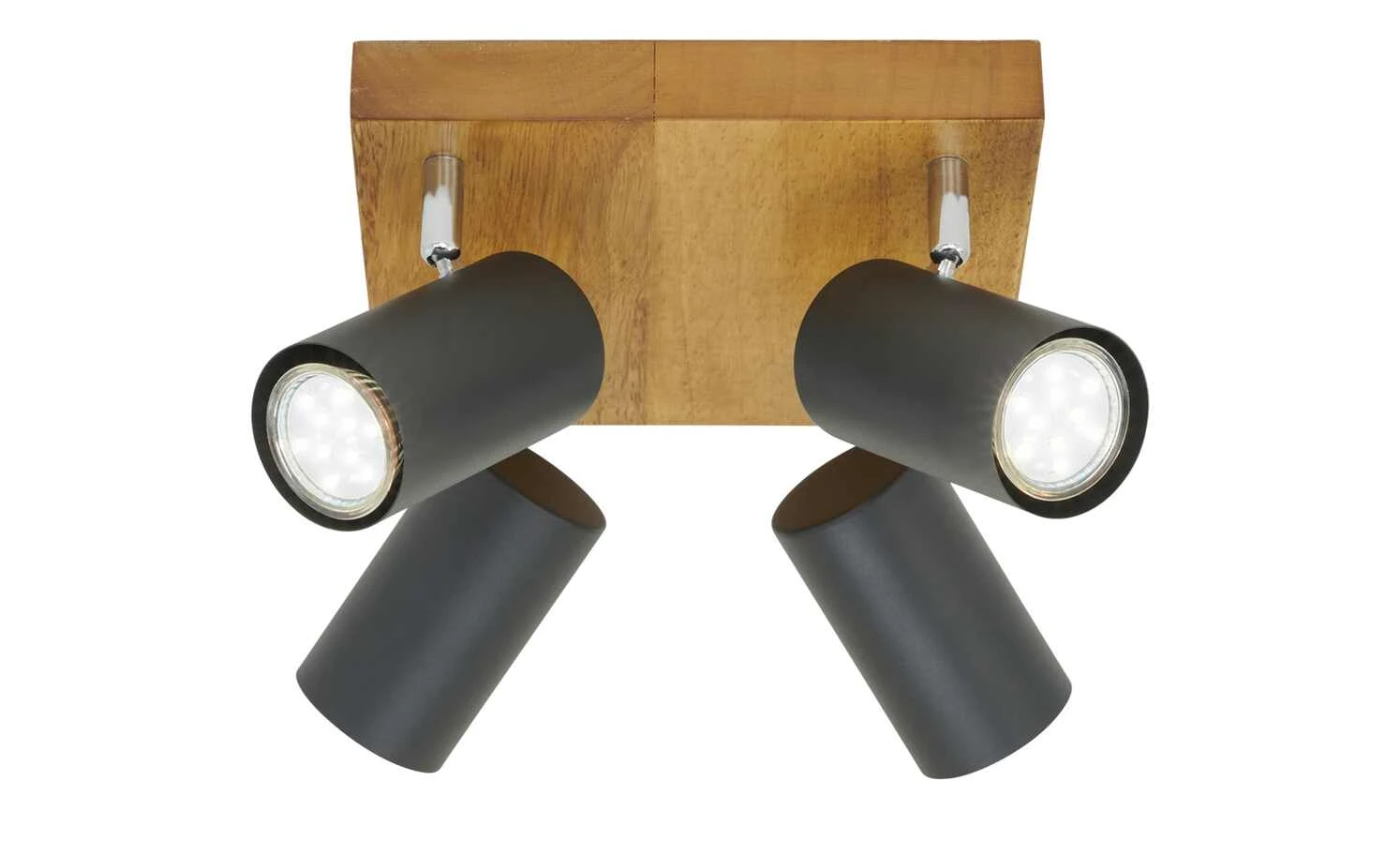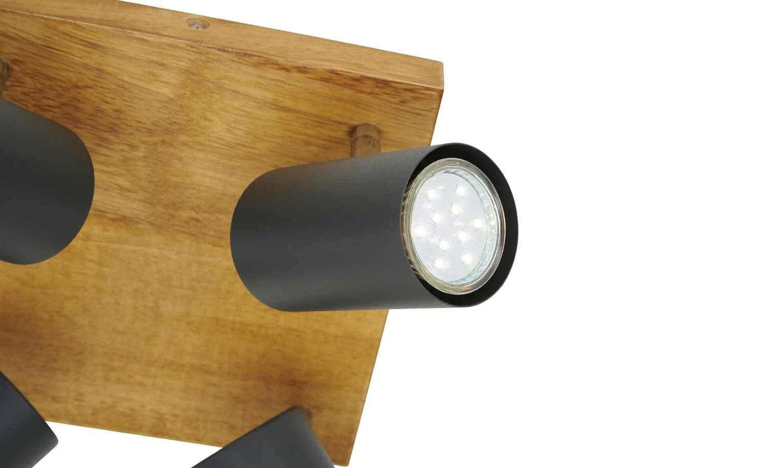 Trio Deckenspot, 4-flammig, schwarz / Eiche
