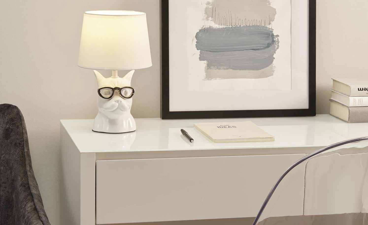 Trio Keramik-Tischleuchte, 1-flammig, Hund weiß