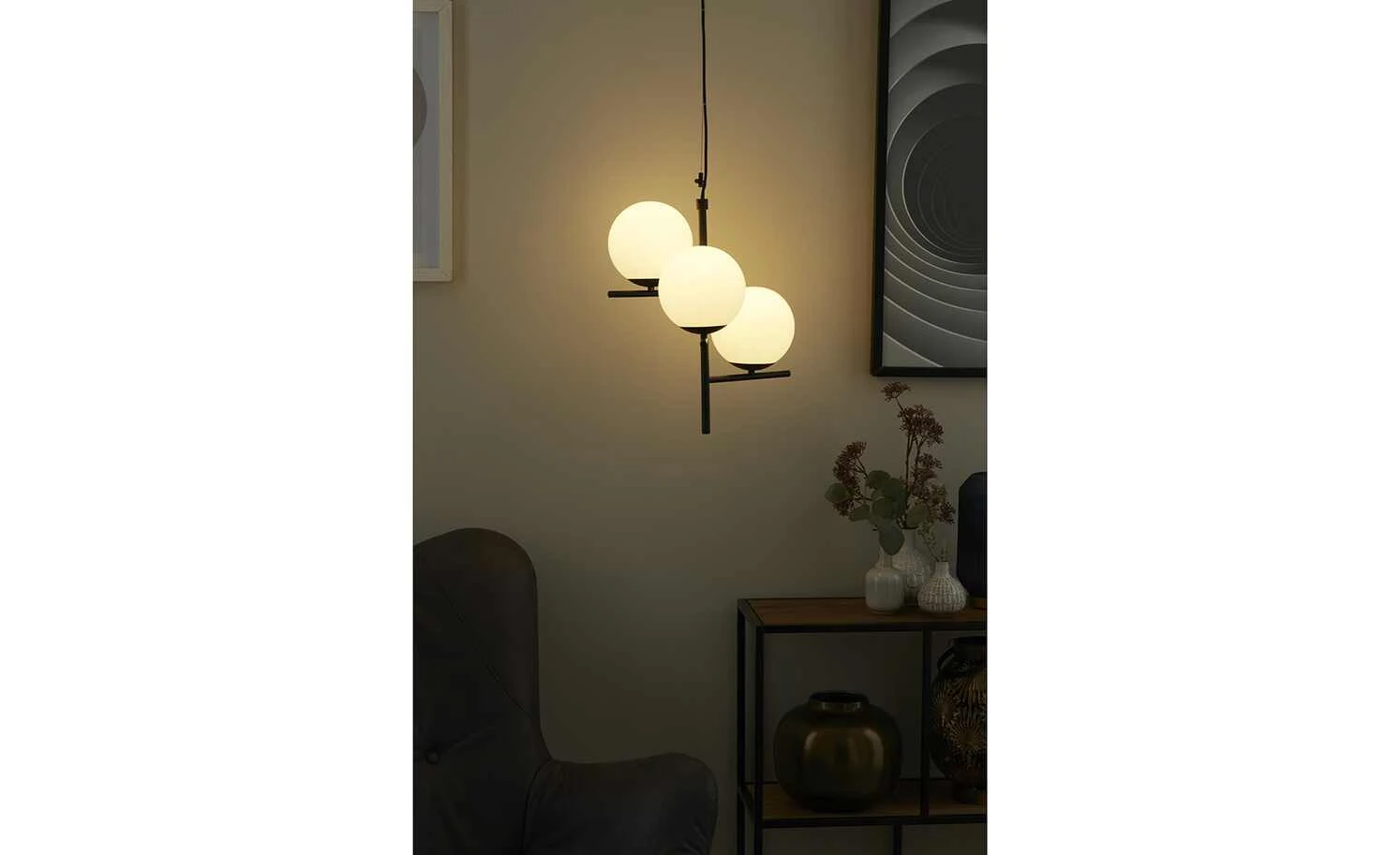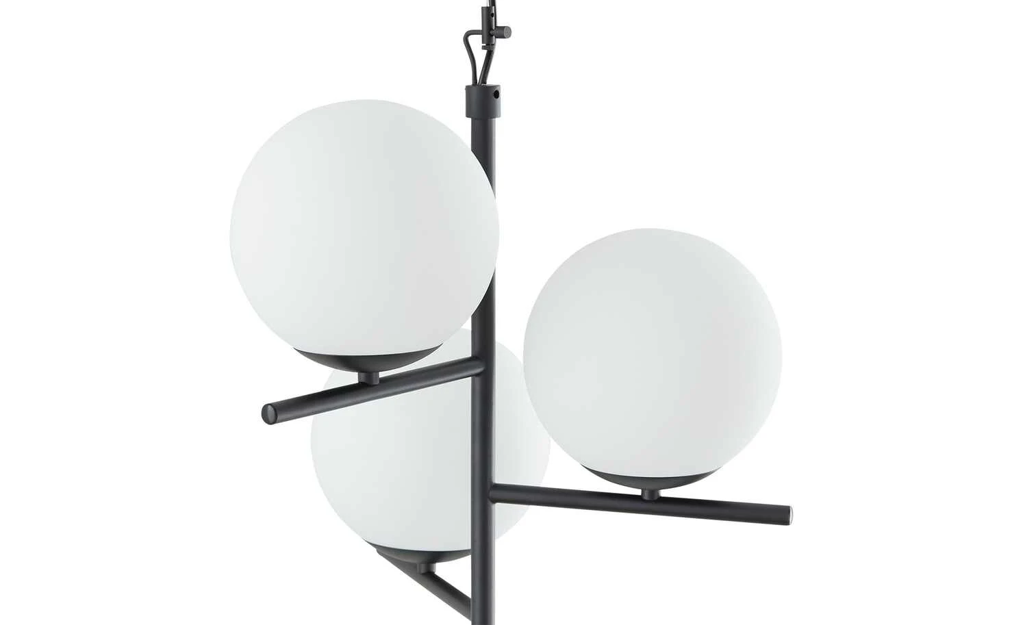 Trio Pendelleuchte, 3-flammig, schwarz, Kugeln weiß
