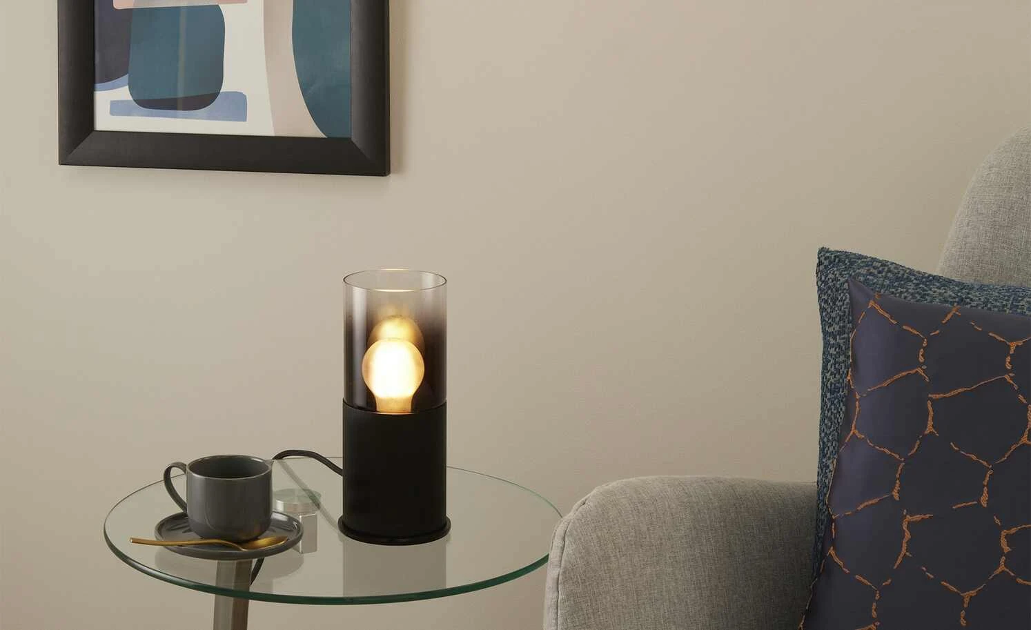 Trio Tischleuchte, 1-flammig, Rauchglas schwarz