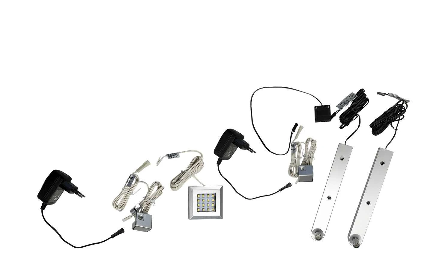- Lieferumfang / mitgeliefertes Zubehör: 2er LED-Objektbeleuchtung ca. 18,5 cm im Set inkl. Trafo, Handschalter und Zuleitung für Wandregal, 1er LED-Unterbaubeleuchtung ca. 5 cm im Set inkl. Trafo, Handschalter und Zuleitung für Sideboard
