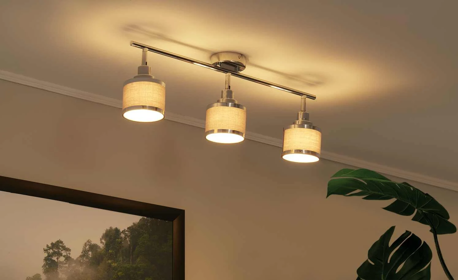 Wofi Strahler 3-flammig, chrom/ Stoffschirm grau